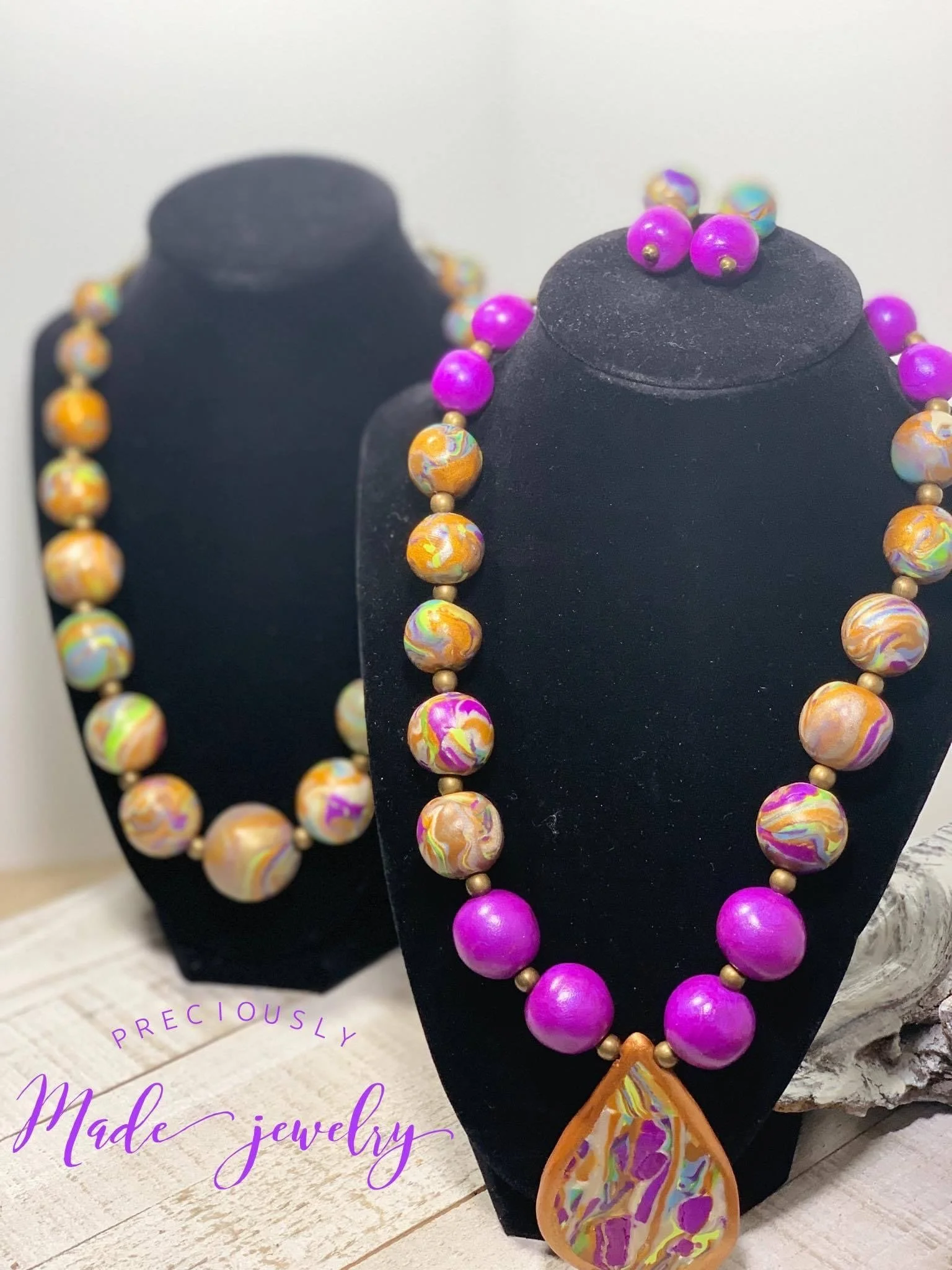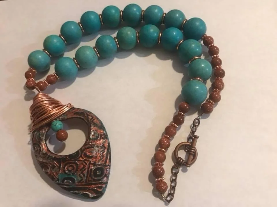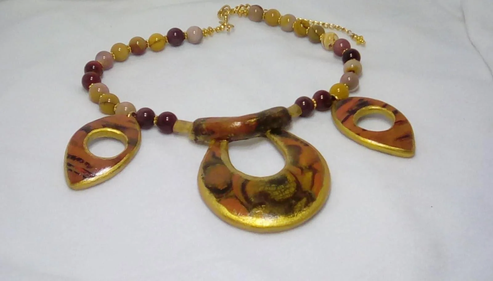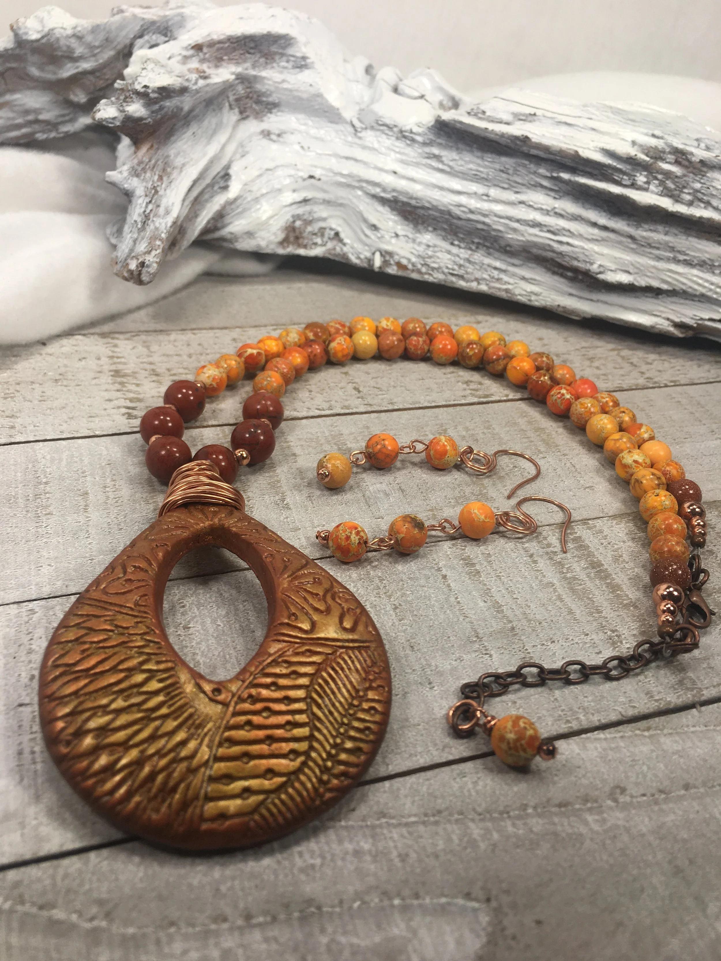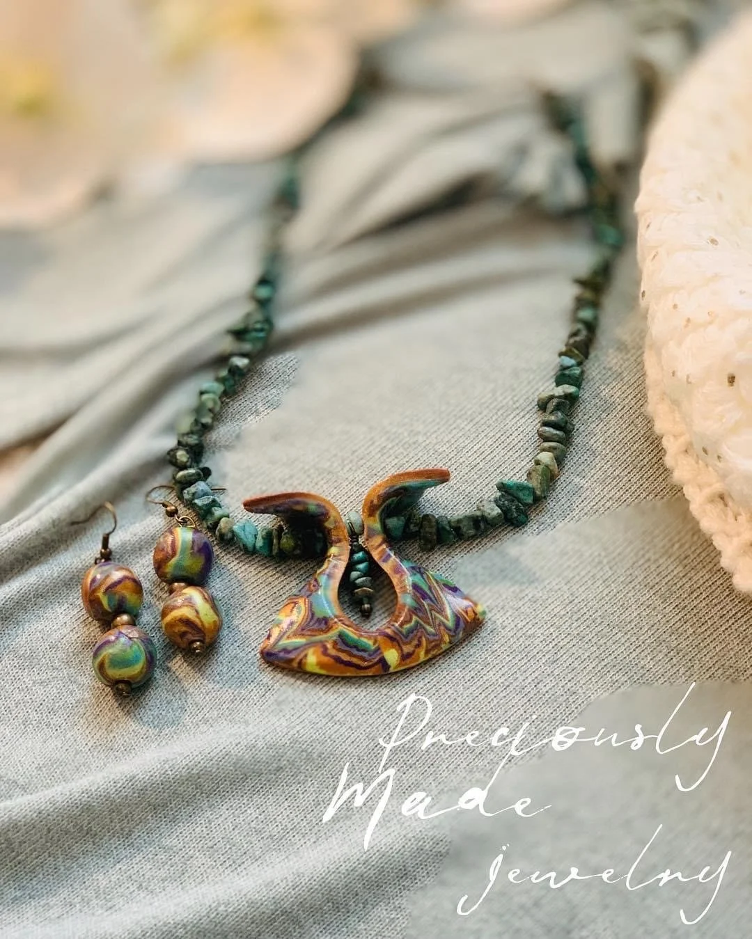 Polymer Clay has endless possibilities. Bracelets were my favorite thing to create, but I have grown to enjoy making pendants and earrings that I use with natural gemstones to create necklaces and earrings. I also love working with copper wire. I also use silver-plated and gold-plated wire, but sterling silver and gold wire is available upon request, but 50% non-refundable deposit is required before I begin on the project.